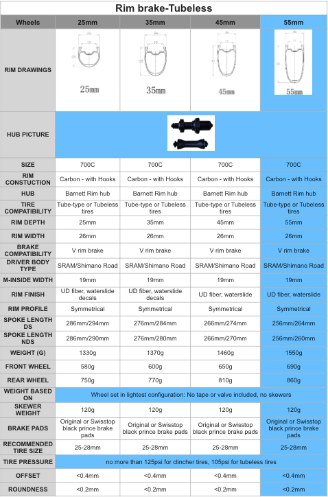 Toutes sont des jantes en fibre de carbone T800 avec un poids plus léger et une qualité durable.